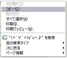 このメニューのコピー(C)を左クリックすると