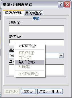 すると↓このような画面が出てきますので、単語/用例登録(W)